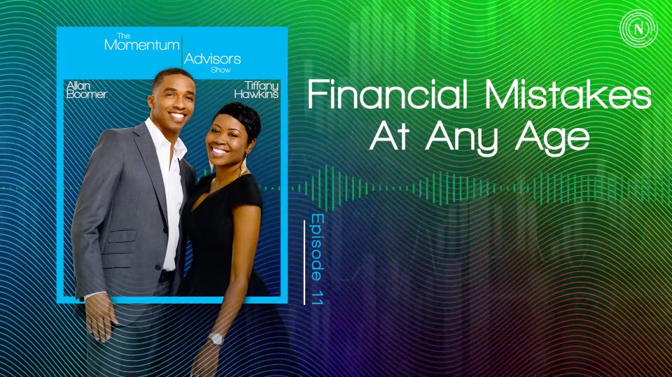 The Momentum Advisors Show11: Financial Mistakes At Any Age11×0:00Current time: 0:00 / Total time: -52:09-52:09Audio playback is not supported on your browser. Please upgrade.11: Financial Mistakes At Any AgeThe North StarJan 17, 20211ShareGetting older doesn't necessarily make you wiser! We've noticed some trends around mistakes people tend to make in their 20s, 30s, 40s, 50s, and 60s. Let this be a cautionary tale of what NOT to do in your financial life!Discussion about this episodeCommentsRestacksThe Momentum Advisors ShowSubscribeListen onSubstack AppRSS FeedAppears in episodeThe North StarRecent Episodes237: Big Changes to the Same Old 401(k)Oct 5 • Shaun King236: Negotiating (While Black), Featuring Damali Peterman. Be Who You Are to Get What You Want.Sep 28 • Shaun King235: Investing in the AI RevolutionSep 21 • Shaun King234: A Tough Week for AmericaSep 14 • Shaun King233: I’m Leaving— A Step by Step Guide for Moving Abroad; The View from LondonSep 7 • Shaun King232: Black Philanthropy Month Part 2: Minnesota Black Collective FoundationAug 25 • Shaun King231: Black Philanthropy Month Part 1: When Black Led Charities are No Longer the Flavor of the MonthAug 17 • Shaun King231: Black Philanthropy Month Part 1: When Black Led Charities are No Longer the Flavor of the MonthAug 17 • Shaun King