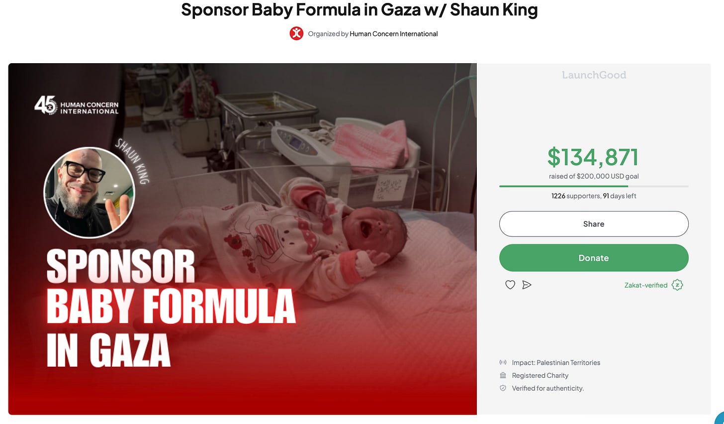 But let’s be clear: $1 million is what we need to aim for. And even that is nowhere near what starving infants in Gaza actually need.