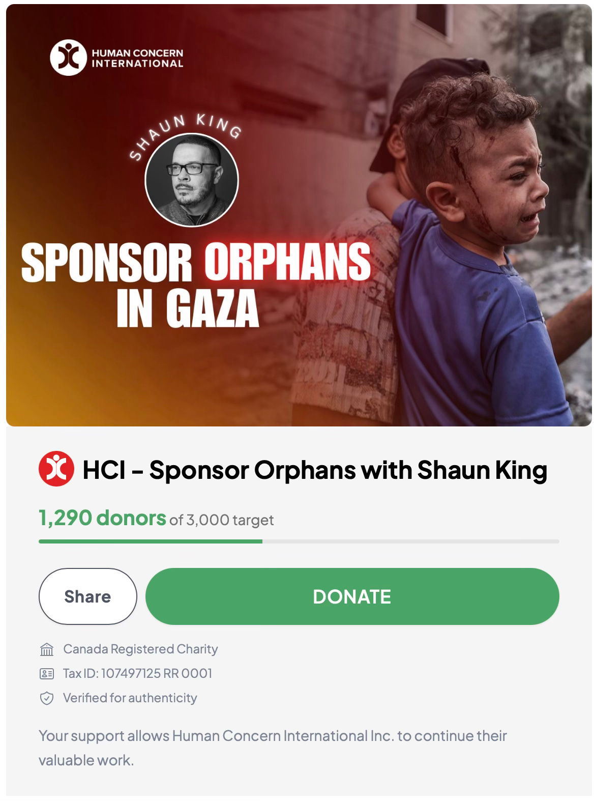 Support orphans in Gaza with HCI and Shaun.