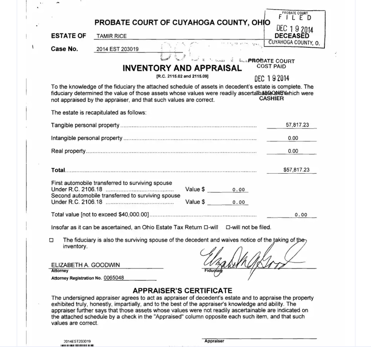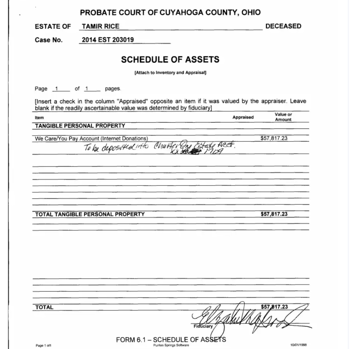 Here is the court document from Cuyahoga County Probate Court showing they seized the $57,817.23 we raised for the family.