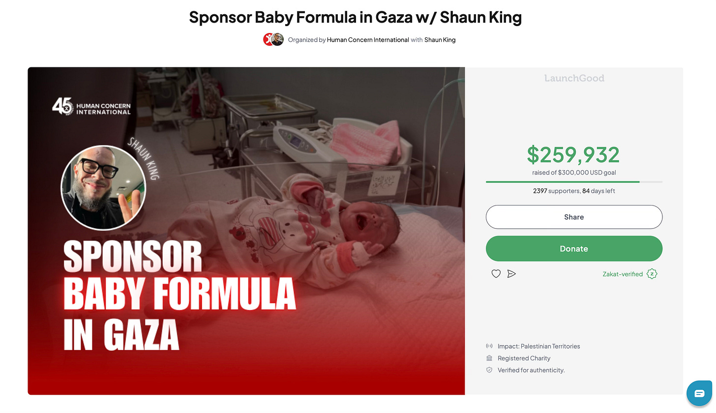 We’ve raised $259,932 so far. Now we’re pushing for $1 million to feed every hungry baby in Gaza.