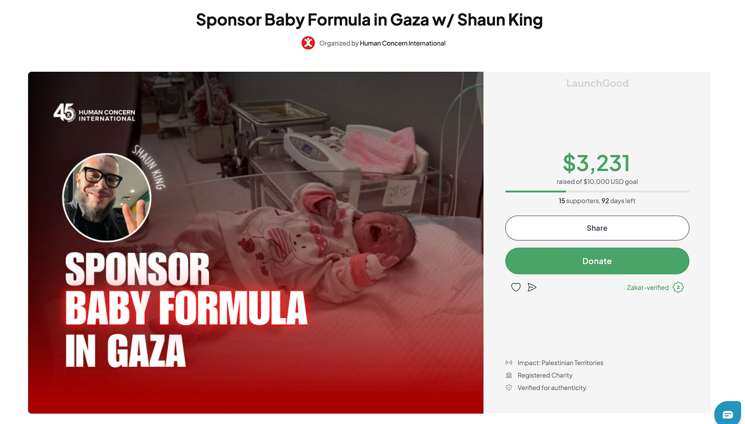 Faith-forward (for Muslims): “And whoever saves a life, it is as if he saved all of mankind.” (Qur’an 5:32) Your zakat/sadaqah becomes baby formula for Gaza’s infants. HCI is Zakat-verified on LaunchGood. Click here to give with intention.