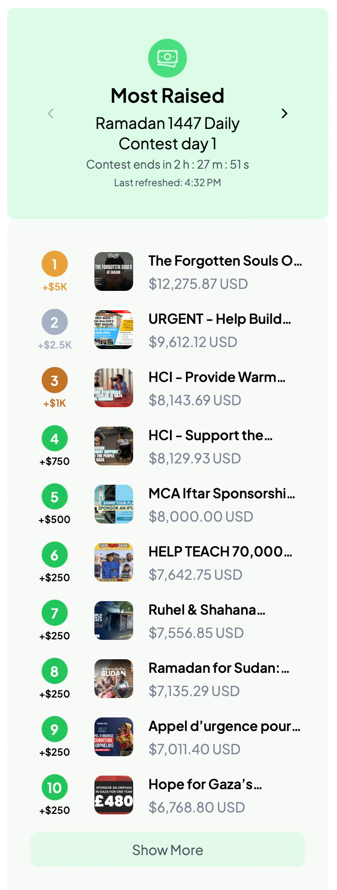 We have 1 hour left in the LaunchGood Ramadan daily contest, and right now weāre in 3rd place.
