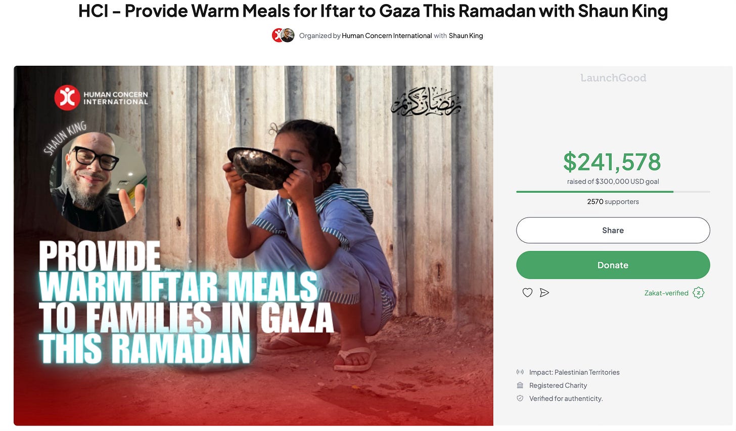 And after you give, share this with as many people as you can. Text it. Post it. Put it in your stories. Send it to your group chats. Tell people that this hour matters and that Gaza can gain an additional $5,000 if we rise to the moment.