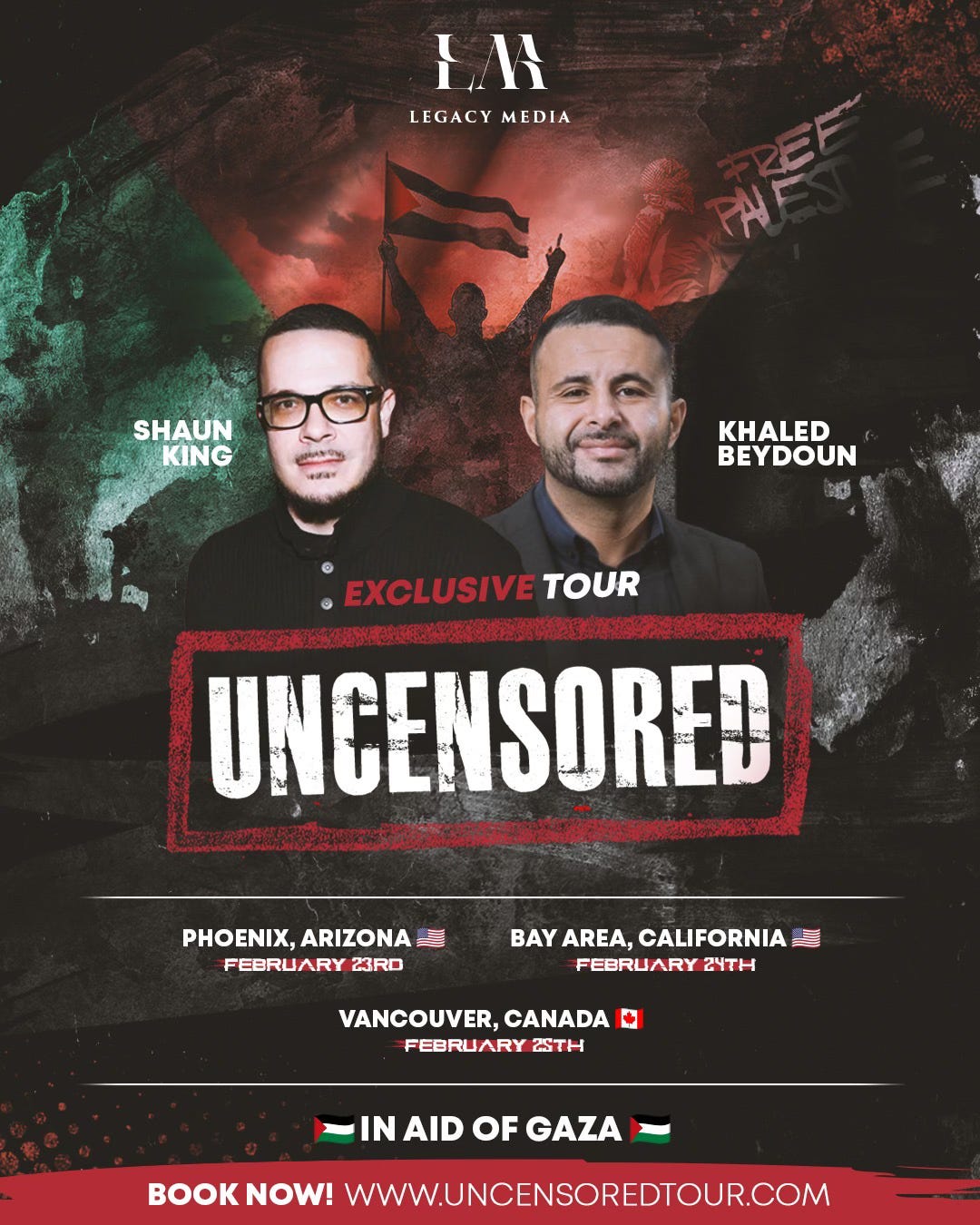 After speaking in Ireland, Scotland, and across the UK in Cambridge, Manchester, Birmingham, and London - Professor Khaled Beydoun and I will be traveling in the next week to PHOENIX, Arizona, the BAY AREA of California, and to VANCOUVER, Canada for our UNCENSORED TOUR.