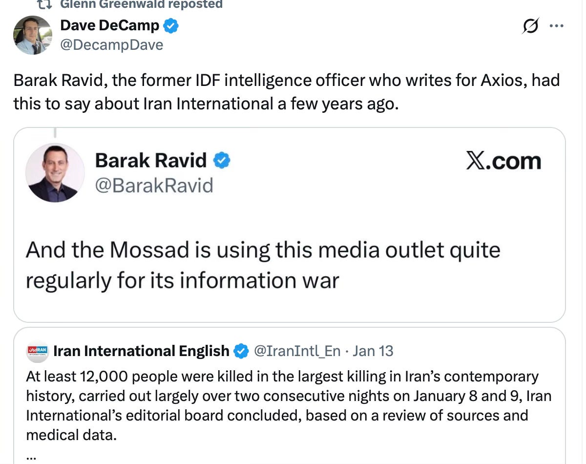 And then there’s this: a screenshot circulating of a past statement attributed to Barak Ravid (a former IDF intelligence officer who now writes for Axios) saying: