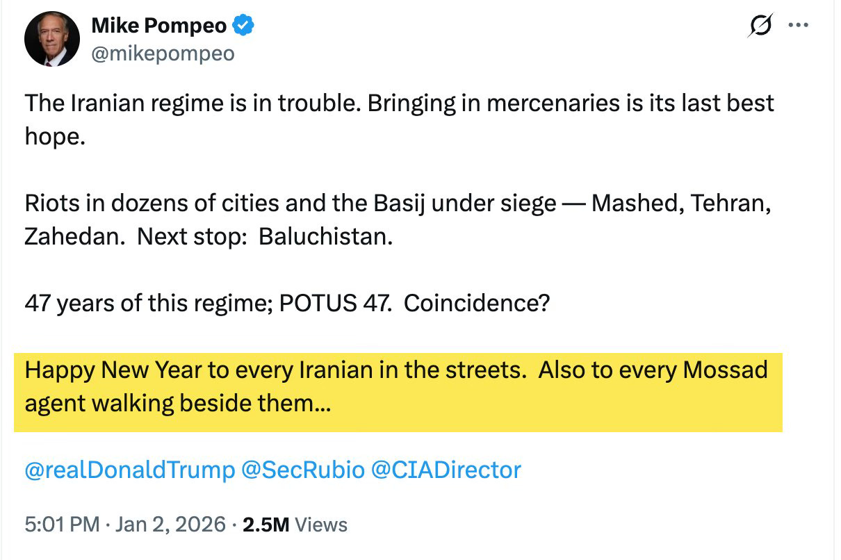 January 2nd, 2026 — Former CIA Director Mike Pompeo posted: