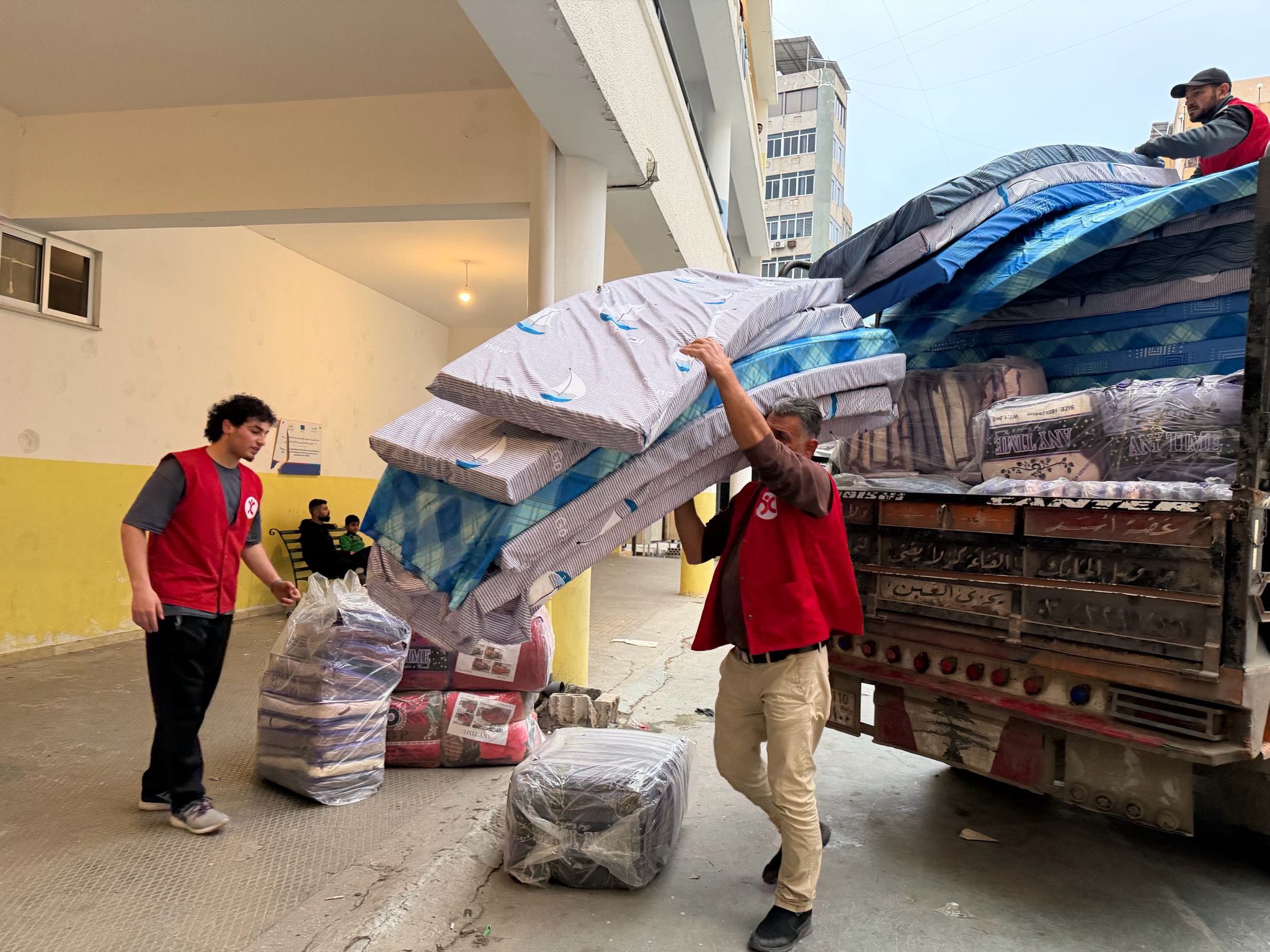 They are delivering mattresses, blankets, and pillows so people are not sleeping on the floor with nothing.