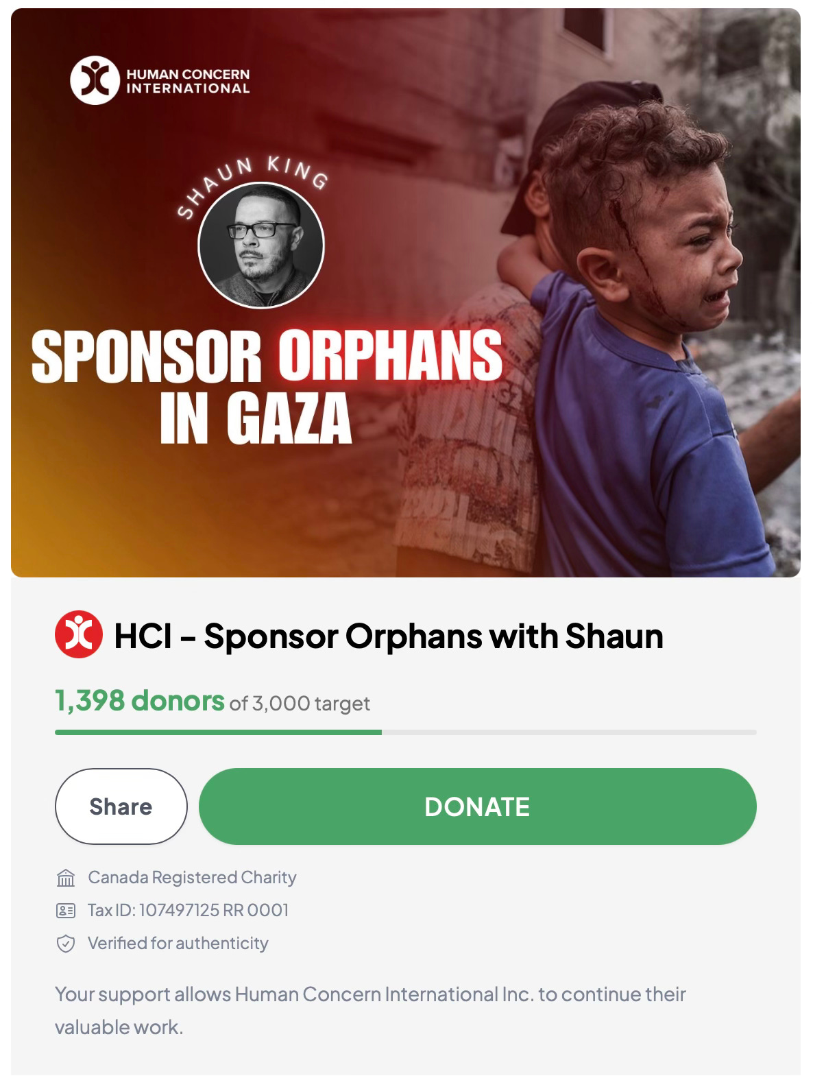 We have 2 hours left in this contest window to sponsor as many orphaned children in Gaza as possible.
