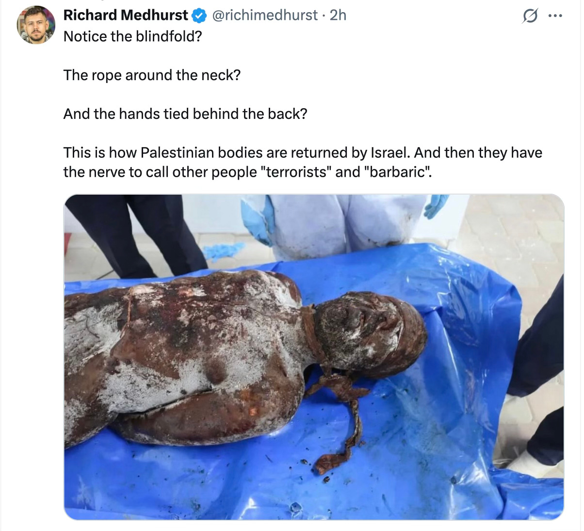 Palestinian journalist Muhammad Shehada shared a horrific image of one victim —
