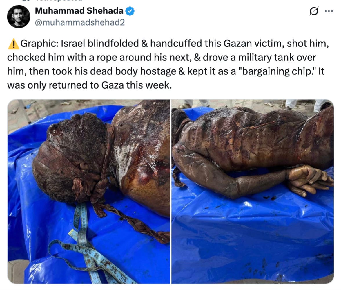Shehada wrote that Israel had “kept his dead body as a bargaining chip” before finally returning it to Gaza this week.